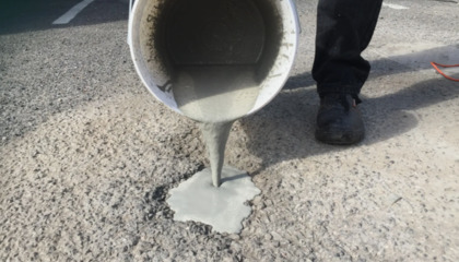 Однокомпонентна швидкодіюча безусадочна наливна ремонтна суміш на цементній основі високої міцності.