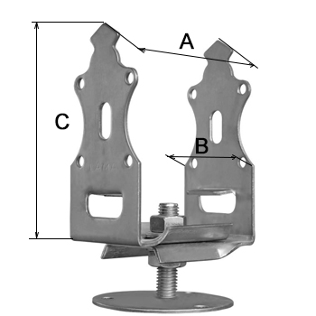 Опора складається з п-образного кріплення з листової сталі товщиною 2.5 мм і різьбовий шпильки.